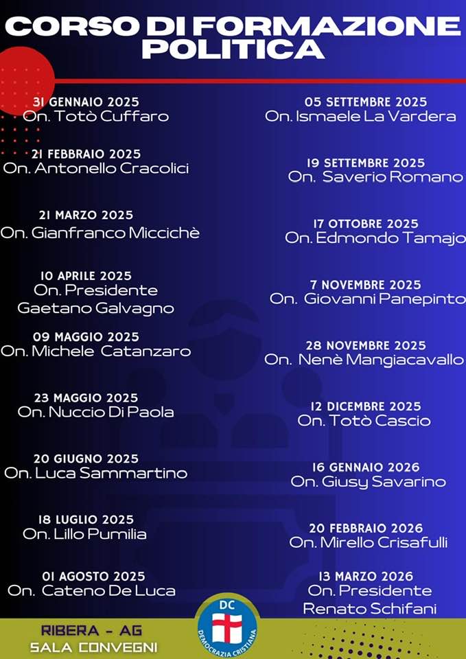 Il corso di formazione politica ha preso il via il 31 gennaio, si snoderà per tutto il 2025 e terminerà il 13 marzo del 2026. Diciotto gli appuntamenti in totale.