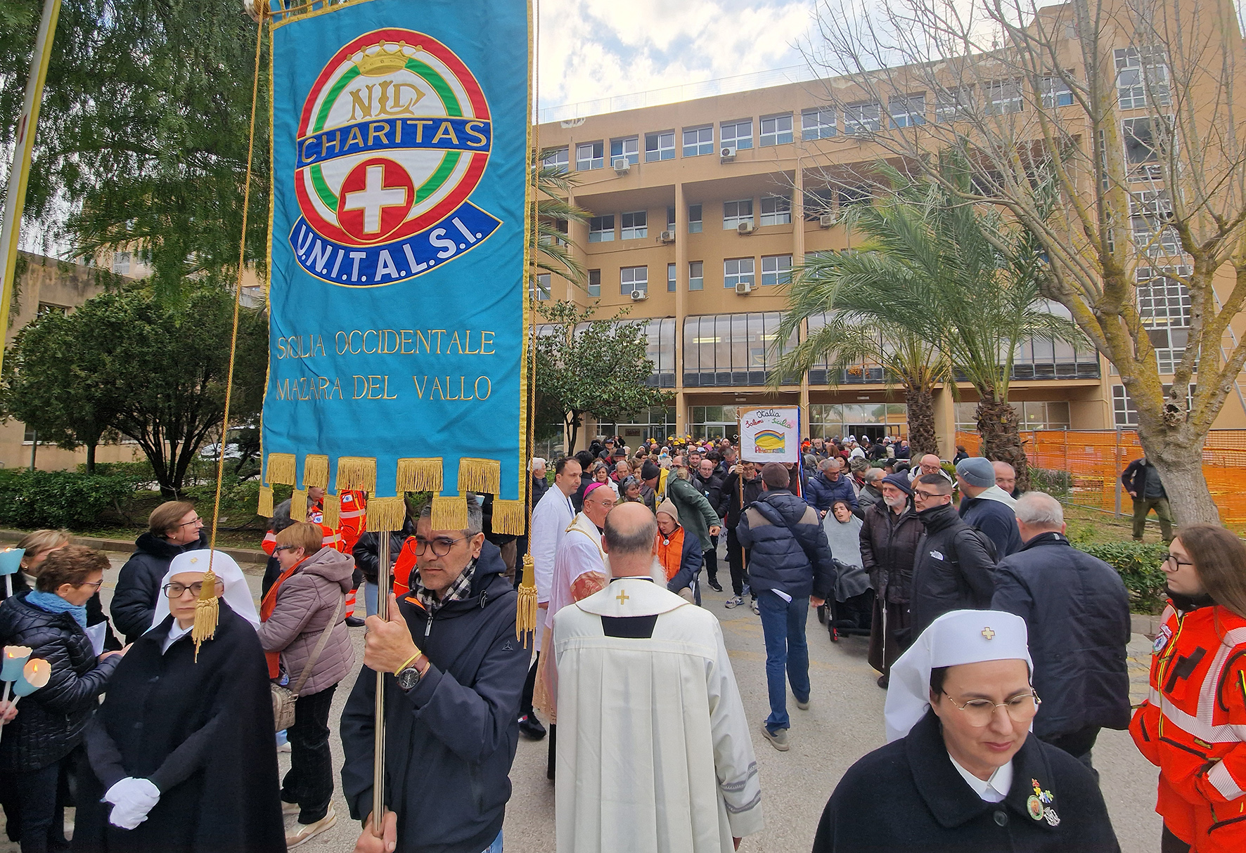 «L’amore di Dio riversato nei nostri cuori, per questo la speranza non delude. Lo Spirito santo rende possibile questo sperare dandoci la testimonianza interiore che siamo figli di Dio, suoi eletti. La speranza non delude e non illude». È questo un passaggio dell’omelia del Vescovo monsignor Angelo Giurdanella nella santa messa di ieri presso la parrocchia Maria Ss. della Confusione di Salemi per la Giornata mondiale del malato. L’iniziativa diocesana è iniziata con un momento di riflessione tenutosi nell’atrio dell’ospedale “Vittorio Emanuele III” di Salemi, col saluto del Vescovo, del direttore dell’Ufficio diocesano di Pastorale della salute e di don Vito Saladino che ha letto il Messaggio del Papa per la Giornata e ha tenuto una riflessione. A seguire, in processione, più di 300 persone tra fedeli, soci Unitalsi, presbiteri, il sindaco Vito Scalisi, rappresentanti di associazioni che si occupano di diversamente abili, hanno sfilato verso la parrocchia dove è stata celebrata la santa messa. Il Vescovo si è rivolto ai volontari Unitalsi ma anche ai genitori dei diversamente abili definendoli «seminatori di speranza». Al termine della celebrazione il Vescovo ha annunciato che la Giornata mondiale del malato 2026, a livello diocesano, sarà celebrata a Mazara del Vallo.