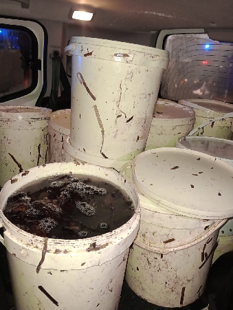 Mezza tonnellata di oloturie (dette anche cetrioli di mare) sequestrata dalla Guardia di Costiera di Trapani in un blitz a Nubia nel cuore della Riserva delle Saline di Trapani e Paceco.
