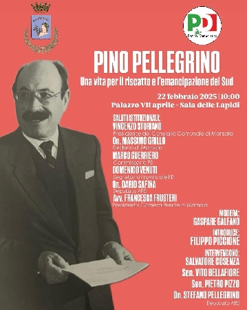 Marsala si prepara a rendere omaggio a una delle figure più rilevanti della politica siciliana del Novecento: il Senatore Pino Pellegrino. In occasione del centenario dalla sua nascita, il Partito Democratico di Marsala organizza l’evento commemorativo dal titolo “Pino Pellegrino, una vita per il riscatto e l’emancipazione del Sud”, che si terrà il 22 febbraio 2025, alle ore 10.00, presso la Sala delle Lapidi di Palazzo VII Aprile.