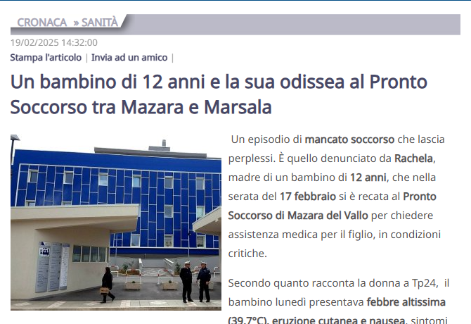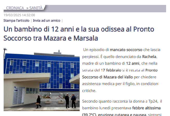 Il caso, che ha sollevato preoccupazione tra i cittadini, era stato segnalato da Rachela, la madre del bambino, che aveva raccontato come, lo scorso 17 febbraio, suo figlio, con febbre alta (39,7°C), eruzione cutanea e nausea, fosse stato rimandato indietro senza nemmeno una visita. Secondo la donna, il medico di turno avrebbe semplicemente detto loro di recarsi a Marsala o Trapani, senza effettuare alcun controllo né misurare la temperatura del piccolo.