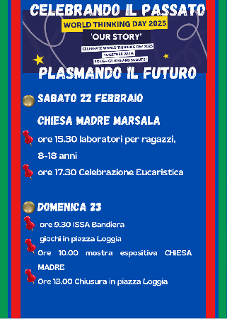 Il Gruppo Scout Marsala 2 invita tutti a partecipare alla Giornata del Pensiero 2025, un evento speciale dedicato alla riflessione sui valori dello scoutismo e alla celebrazione della sua storia. Quest’anno il tema dell’evento sarà "La nostra storia", un’occasione unica per ripercorrere le tappe che hanno segnato il cammino degli scout e per riscoprire le radici di questa straordinaria avventura.
