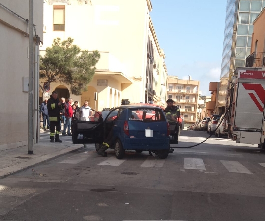 Vigili del fuoco in azione questa mattina in Via Massimo D'Azeglio, a Marsala, per una minicar in fiamme.
