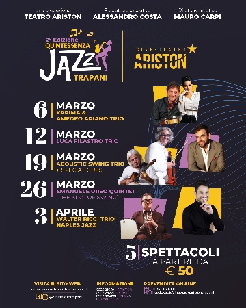 Dopo il successo della prima edizione, torna a Trapani la rassegna "Quintessenza Jazz Trapani", il festival dedicato alla grande musica jazz che si svolgerà al Cine Teatro Ariston