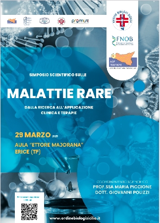 Il 29 marzo 2025, presso l’Aula Ettore Majorana di Erice, si svolgerà la seconda edizione dell’evento dedicato alle malattie rare, intitolato “Simposio Scientifico: dalla ricerca all’applicazione clinica e terapia”. L'incontro offrirà, il cui coordinamento scientifico è della prof. Maria Piccione e del dott. Giovanni Polizzi, sarà un'opportunità di aggiornamento sullo stato attuale della ricerca nel settore e sul suo impatto nell’ambito delle cure disponibili per i pazienti e le loro famiglie.