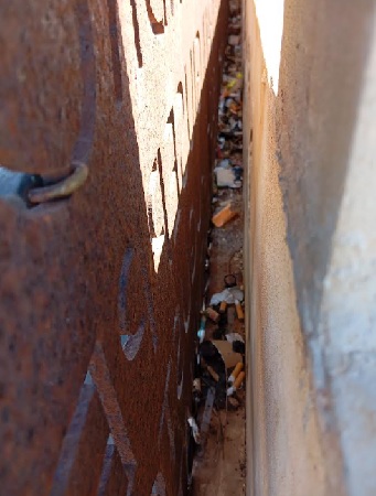L'appello di Elio Piazza : "All'ingresso dell'atrio esiste l'apposito contenitore per i rifiuti differenziati ma esso rimane inutilizzato da quanti frequentano il Monumento i quali, per la pigrizia di scendere a deporvi i rifiuti delle merende consumate sulle terrazze, non esitano a disfarsene collocandoli nelle intercapedini larghe apppena dieci centimetri.