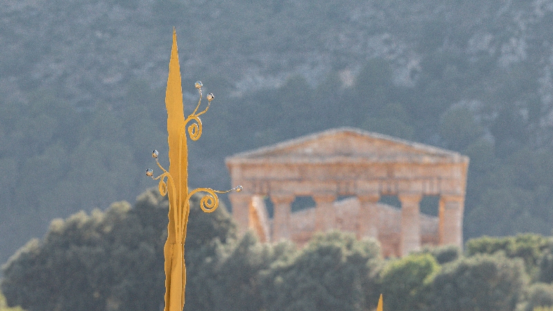 Che l’ha fatta da padrona l’anno scorso per la mostra “Elyma” di Gandolfo Gabriele David: installazioni vegetali in forte dialogo con il Parco archeologico, che hanno segnato la riapertura al pubblico del tempio dorico, rimasto inaccessibile per due decenni. Da questa esperienza è nata una pubblicazione che attraverso interviste, documentazioni, saggi e racconti, approfondisce temi inerenti arte, territorio e comunità. Una riflessione ecologica ed estetica, un progetto stratificato e su più linguaggi, che si intreccia e si fonde con il patrimonio materiale e immateriale di Segesta. Archeologia e Land art per una visione che si aggrappa a culture lontane che qui hanno lasciato traccia o che si ritrovano nel ciclo vitale in cui umani, insetti, piante sono un tutt’uno. E che a Segesta è proprio tangibile in ogni singolo angolo, sentiero, reperto.