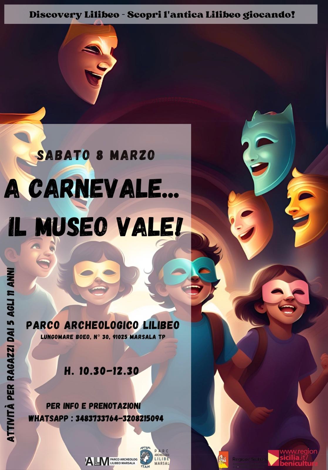 MARSALA - Sabato 8 marzo, al Parco Archeologico Lilibeo di Marsala, appuntamento speciale per i più piccoli con il ciclo “Discovery Lilibeo”. Dalle 10:30 alle 12:30, i bambini tra i 5 e gli 11 anni potranno partecipare a una visita guidata e a un laboratorio creativo. Verranno esplorati i misteri e i simboli degli antichi abitanti di Lilibeo, realizzando maschere ispirate a miti e personaggi storici. Ingresso e attività didattica a 8 euro, prenotazione obbligatoria.