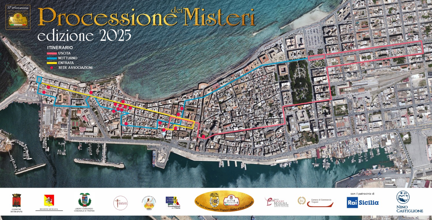 La processione seguirà il percorso stabilito dall’Unione Maestranze di Trapani, con alcune conferme e alcune variazioni che hanno suscitato anche qualche critica. Ecco il tragitto completo: