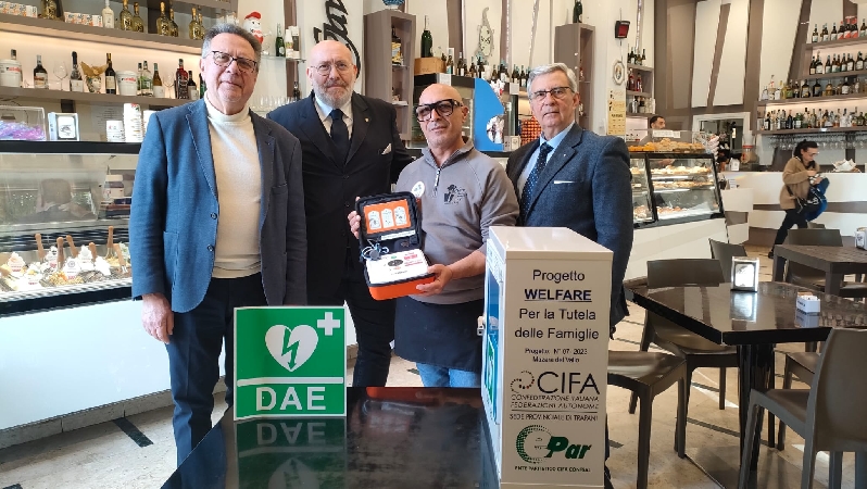 La Confederazione Provinciale CIFA-Sezione Trapani ha consegnato al GAV Caffè di La Rosa & Russo, sito in via SS. Salvatore, nei pressi del lungomare Mazzini di Mazara del Vallo, un dispositivo medico defibrillatore che sarà a disposizione dei cittadini nel caso di emergenze.