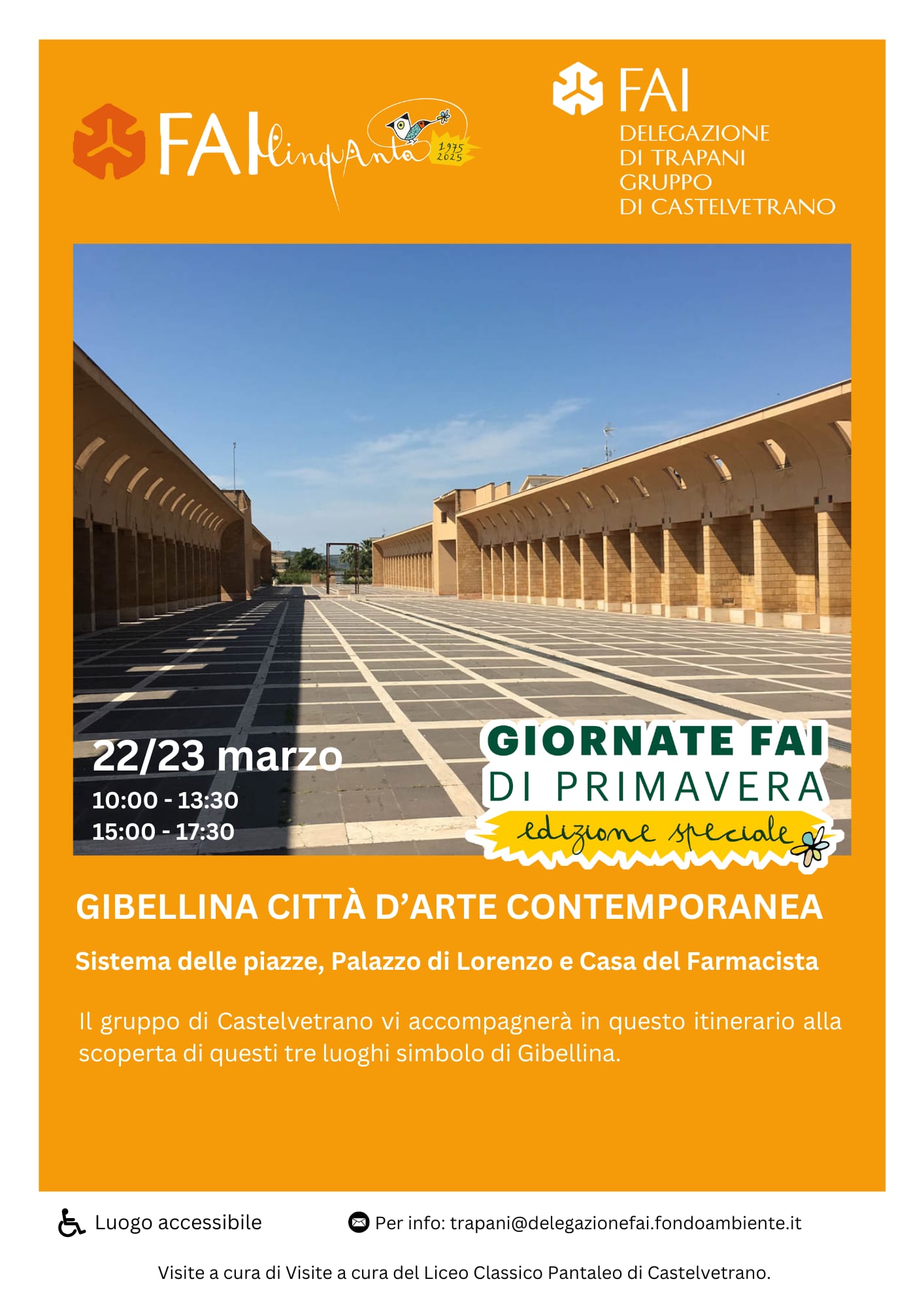 “Quest’anno, il nostro Gruppo Fai di Castelvetrano – ha affermato Graziella Zizzo - assieme a tutta la Delegazione di Trapani, ha scelto di organizzare a Gibellina, da poco designata “Capitale dell’arte contemporanea”, le Giornate di Primavera. Oltre alle visite guidate, ad opera di un gruppo di studenti Ciceroni del Liceo classico di Castelvetrano, tante saranno le iniziative che si terranno nelle giornate di sabato e domenica del 22 e 23 Marzo.