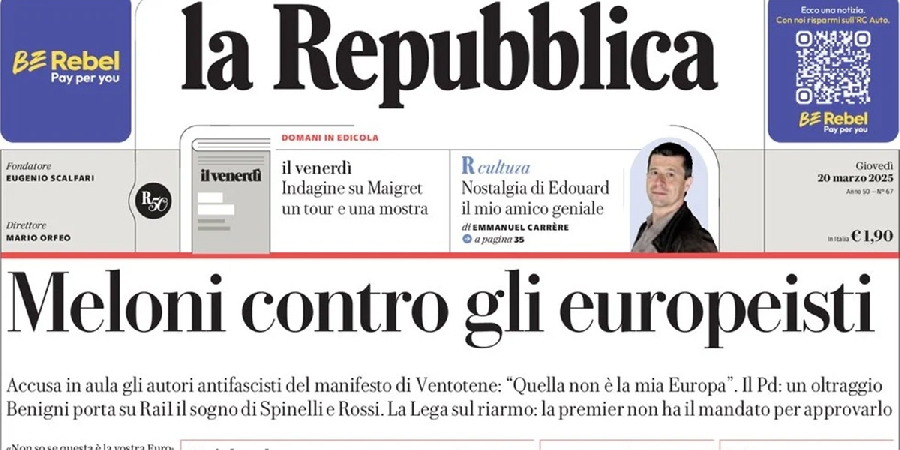 • Domani: Meloni insulta l’Europa antifascista / Lo sfregio al Manifesto di Ventotene