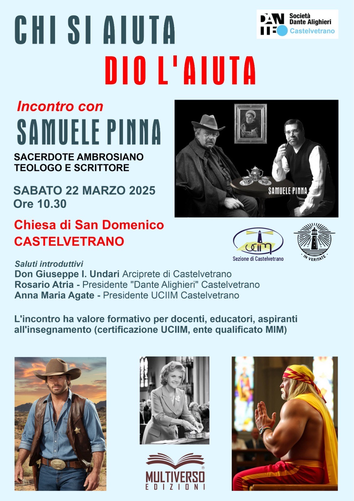 La Società Dante Alighieri e l’UCIIM di Castelvetrano, con il patrocinio dell’Arcipretura di Castelvetrano, organizzano un incontro con Samuele Pinna, sacerdote ambrosiano, teologo e scrittore.
