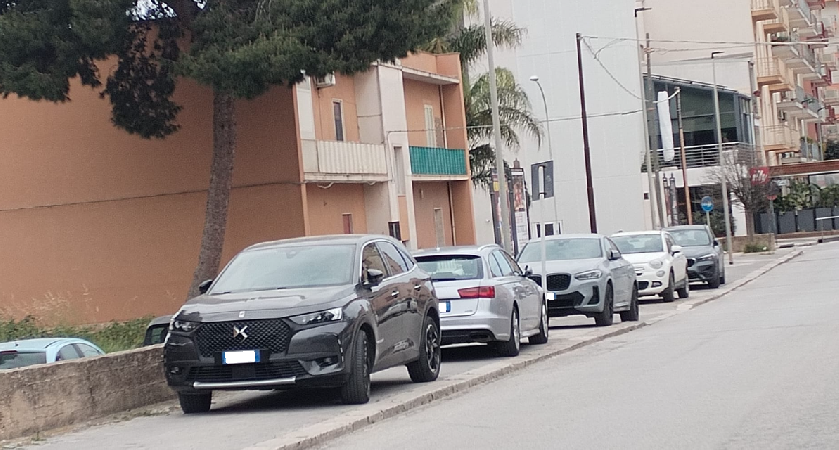 Quattro SUV e una familiare. Si trovano in bella mostra, come se fossero in attesa di essere viste e poi acquistate da qualche acquirente di passaggio. La "cosa che stona" in tutto questo è che le vetture in questione non si trovano in un normale autosalone, ma su un marciapiede, quello della strada che costeggia il Distretto Sanitario dell’Asp (ex Inam) a Marsala.