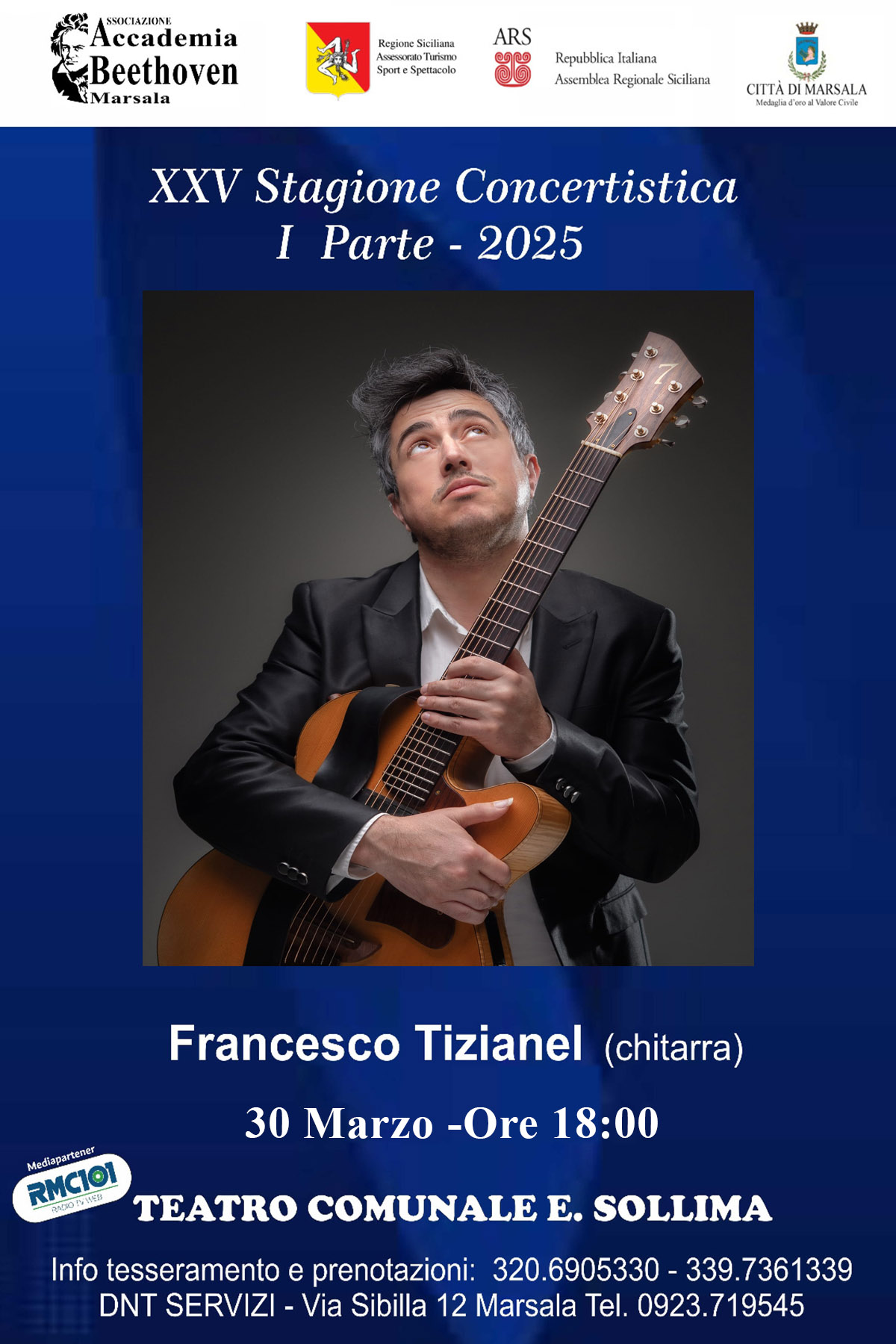 L’Accademia Beethoven, guidata dal presidente Giuseppe Lo Cicero, celebra 35 anni di attività puntando su innovazione e qualità. “Un chitarrista che incarna l’avanguardia – dichiara Lo Cicero –, la sua musica è poesia che nasce dalla tecnica. Nella nostra stagione concertistica, volutamente dedicata alle eccellenze, Tizianel è l'esempio di come la tradizione possa sposare l'innovazione, dando vita a qualcosa di assolutamente originale. La sua presenza a Marsala sarà un'occasione imperdibile per sperimentare come la musica possa ancora sorprenderci e commuoverci”. L’evento, patrocinato da Comune di Marsala, Assemblea Regionale Siciliana e assessorato allo Sport e Spettacolo, conferma la città come hub culturale.