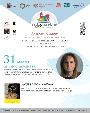 Nell'ambito della VII edizione di TrapanIncontra "Parole di Donne", la Biblioteca Fardelliana di Trapani ospiterà lunedì 31 marzo, alle ore 18:00, Milena Palminteri che presenterà il suo romanzo "Come l'arancio amaro" (Bompiani).