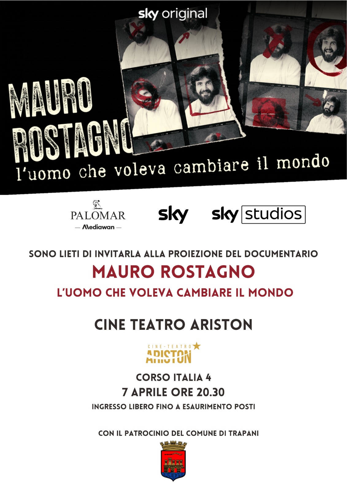 Una serata dedicata alla memoria di Mauro Rostagno, l’uomo che ha segnato la storia di Trapani con il suo impegno civile e giornalistico. Lunedì 7 aprile, alle ore 20.30, al Cine Teatro Ariston di Trapani, si terrà la proiezione del documentario “Mauro Rostagno. L’uomo che voleva cambiare il mondo”, una produzione Sky Original realizzata da Palomar e Sky Studios.