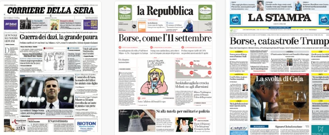 Domani: I dazi di Trump affondano l’Italia / La Borsa crolla, Meloni minimizza