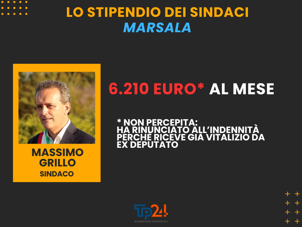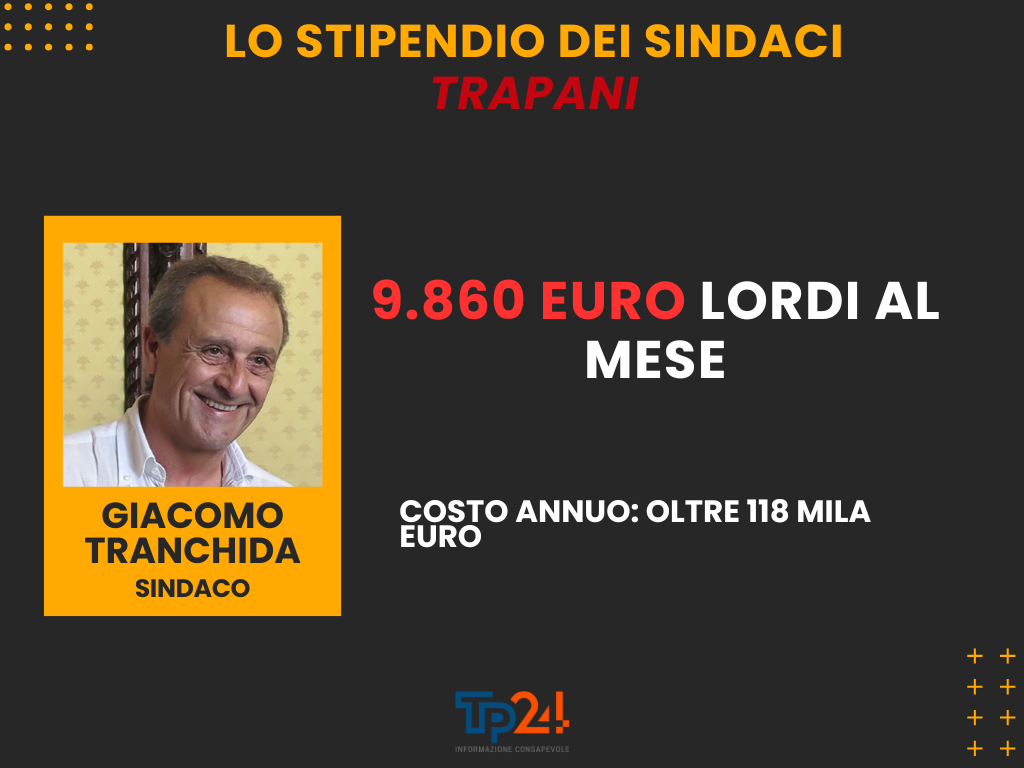 Al primo posto, in termini di retribuzione, c’è il sindaco Giacomo Tranchida, che percepisce 9.860 euro mensili lordi, comprensivi di 821,10 euro di IRAP.