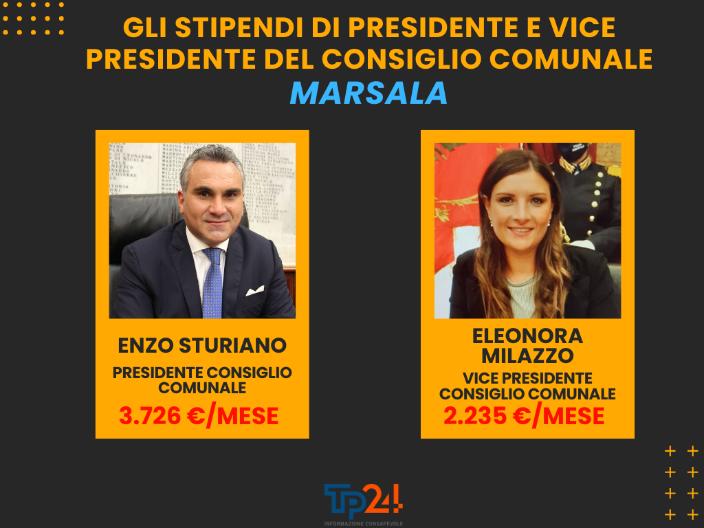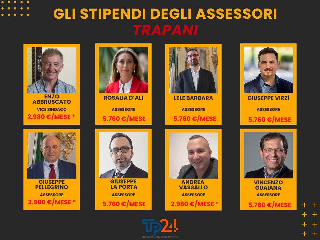 A Trapani nel 2025 il Comune spenderà oltre 750 mila euro per gli stipendi di sindaco, vice sindaco, assessori, presidente del consiglio comunale e vice presidente del consiglio comunale. A Marsala per le stesse figure si spende un po’ meno, circa 400 mila euro.