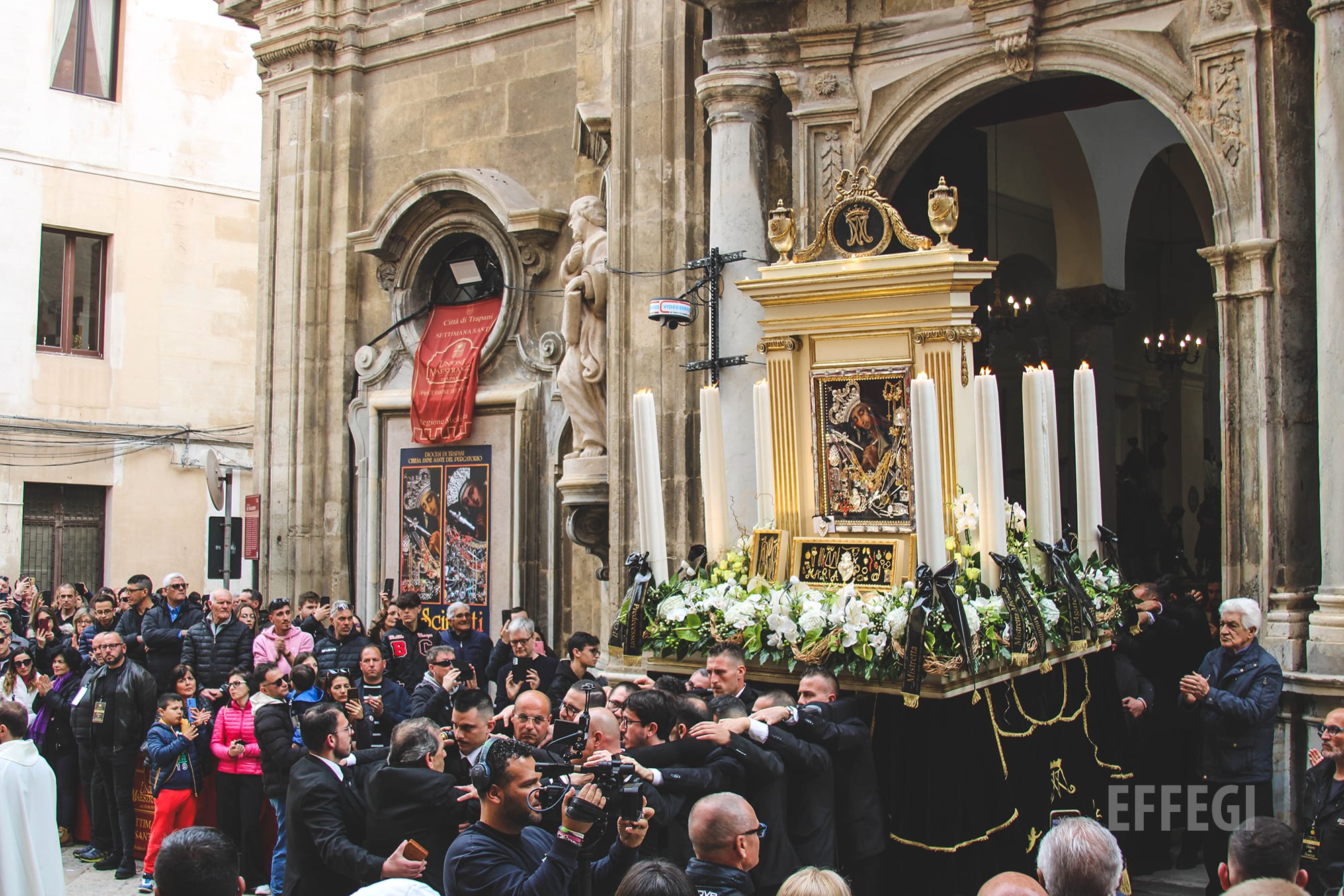 Trapani si prepara a vivere i giorni più intensi della Settimana Santa, che culmineranno nella storica e amatissima processione dei Misteri del Venerdì Santo. Ma già in queste ore, nel centro storico, si rinnova una delle tradizioni più suggestive e partecipate: quella della Madre Pietà dei Massari e quella della Madonna del Popolo.