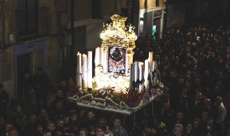 Ogni “annacata” — il tipico movimento oscillante della vara — si fa portatrice di emozione pura, amplificata dai suoni delle marce funebri, dai rintocchi di tamburi, dal colpo secco delle ciacculi, e dal caratteristico profumo di cera (“ciauru di cira”), che si diffonde nell’aria e accompagna l’intero corteo. Il popolo, in silenzio e commozione, partecipa compatto, insieme ai tanti turisti affascinati da questa tradizione che fonde sacro e memoria collettiva.
