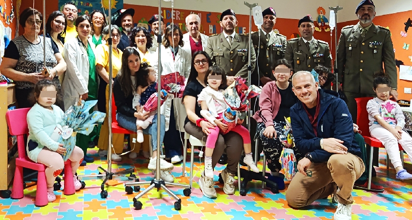 L’iniziativa ha assunto un significato ancora più profondo grazie alla semplicità degli incontri con i bambini e le loro madri, che vivono il delicato momento del ricovero con forza e dignità. I Bersaglieri, attraverso la loro presenza sobria e affettuosa, sono riusciti a donare attimi di gioia e normalità, tra uno scambio di battute, una carezza, una foto ricordo. Proprio il tradizionale cappello piumato del Corpo, passato di mano in mano tra i bambini, è diventato la mascotte della giornata: simbolo di appartenenza, di forza e protezione, ma anche di gioco e leggerezza. A rendere ancora più speciale l’incontro è stato un momento conviviale semplice ma sentito: la condivisione di fette di colomba pasquale tra visitatori, personale sanitario e famiglie, un piccolo gesto capace di creare calore, unione, senso di comunità. “La Fortezza”, fondata nel 2018, si conferma così una realtà viva e attiva, capace di interpretare il ruolo del militare come presidio sociale, costruttore di relazioni, ponte tra istituzioni e cittadini. I Bersaglieri del VI Reggimento continuano a testimoniare, con discrezione e costanza, quanto sia importante essere presenti nel quotidiano, soprattutto laddove si combattono battaglie silenziose, come quelle affrontate nei reparti pediatrici. Il gesto delle Uova di Pasqua non è stato soltanto un dono materiale, ma un messaggio di vicinanza, attenzione e speranza.