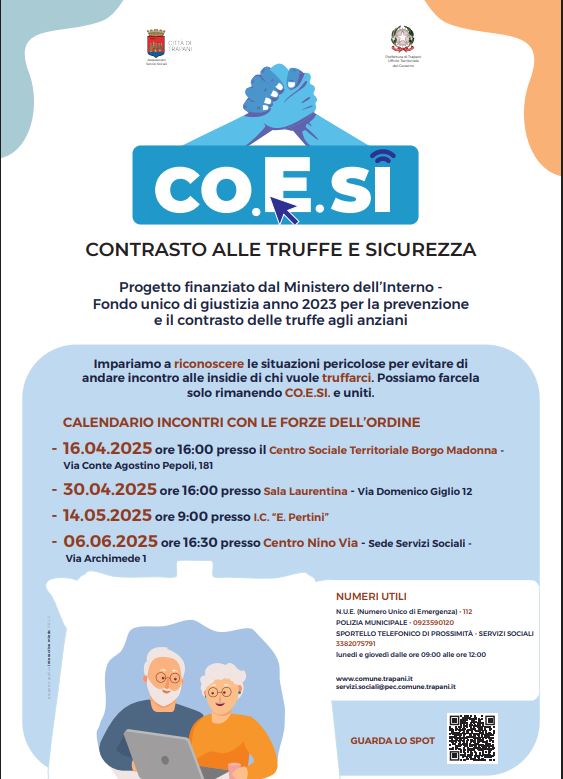 Nel Trapanese si alza la guardia contro le truffe, soprattutto quelle che prendono di mira gli anziani. Proprio per questo, ha preso il via "CO.E.SI. - Contrasto alle Truffe e Sicurezza", un progetto che punta dritto a far capire come funzionano questi raggiri e come possiamo evitarli.