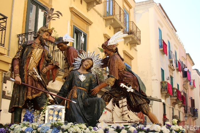 Ad ogni modo, le distanze accumulate tra un gruppo e l’altro a metà processione del sabato sono state recuperate dagli ultimo gruppi “costretti” a velocizzare le proprie processioni anche per un problema di viabilità atto a liberare la via Carolina prima e la via Libertà dopo.