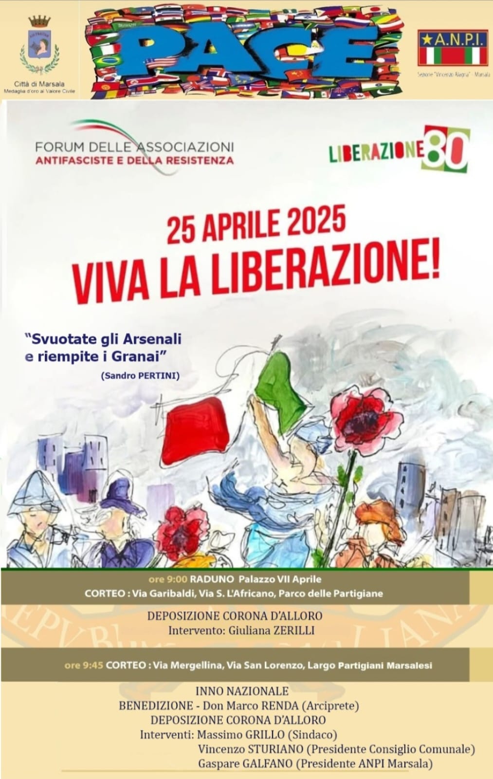 Il Paese è infatti attraversato da un duplice sentimento: da un lato, la volontà popolare di onorare la memoria dei partigiani e dei caduti della Resistenza; dall’altro, le disposizioni del governo che – in seguito alla morte di Papa Francesco – ha proclamato il lutto nazionale, chiedendo celebrazioni “sobrie” e bandiere a mezz’asta. Una scelta che ha generato forti reazioni politiche e accuse di voler ridimensionare la portata civile del 25 aprile. Ma nonostante le polemiche, l’Italia scende in piazza, con manifestazioni da nord a sud. Marsala, Castelvetrano, Castellammare del Golfo, e l’intera provincia di Trapani, dove l’ANPI e le amministrazioni locali hanno promosso una fitta rete di iniziative.