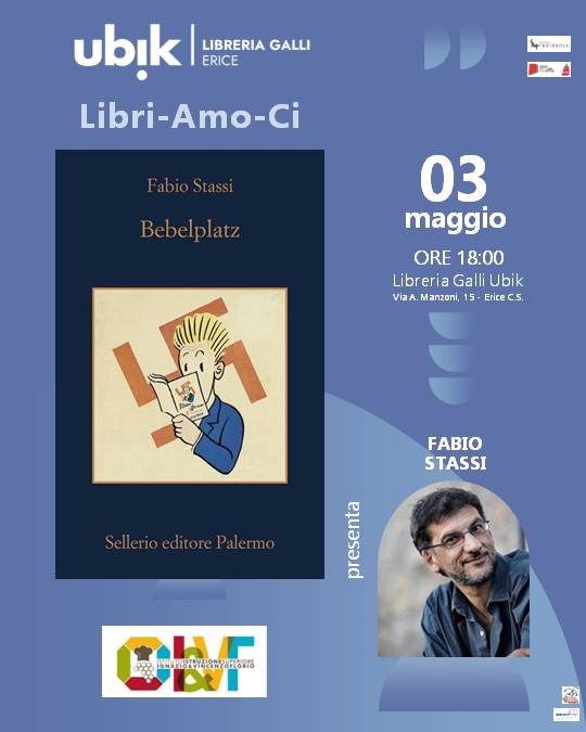 Sabato 3 maggio alle ore 18, la Rassegna letteraria “LibriAmoCi – Incontro con l’Autore”, organizzata dall’Istituto Superiore ‘Florio’ di Erice in collaborazione con la Libreria Galli Ubik-Erice, ospiterà Fabio Stassi che presenterà il suo nuovo lavoro dal titolo “Bebelplatz. La notte dei libri bruciati” - edito da Sellerio - un libro sui libri che celebra la potenza della parola scritta e dell’immaginazione.