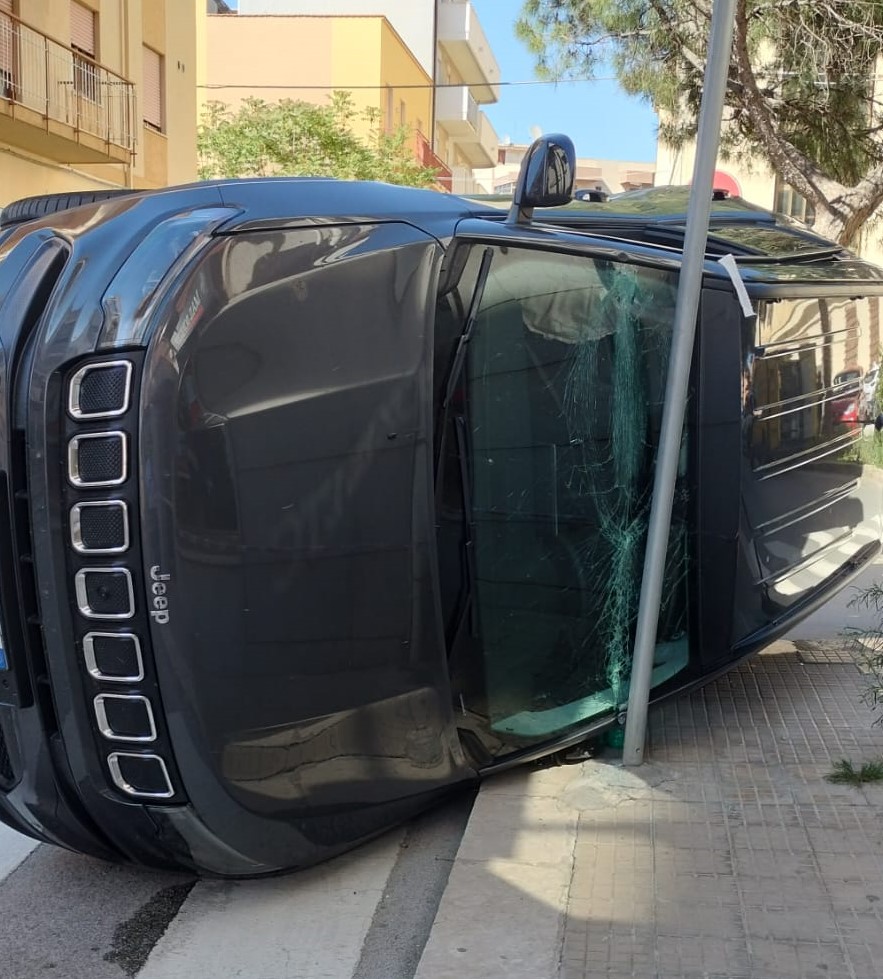 Rocambolesco incidente a Marsala. Auto si ribalta in centro