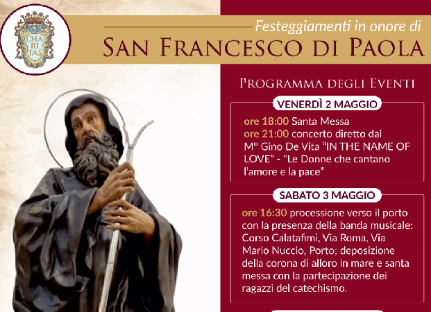 Iniziano oggi, 2 maggio, i festeggiamenti in onore di S. Francesco di Paola.