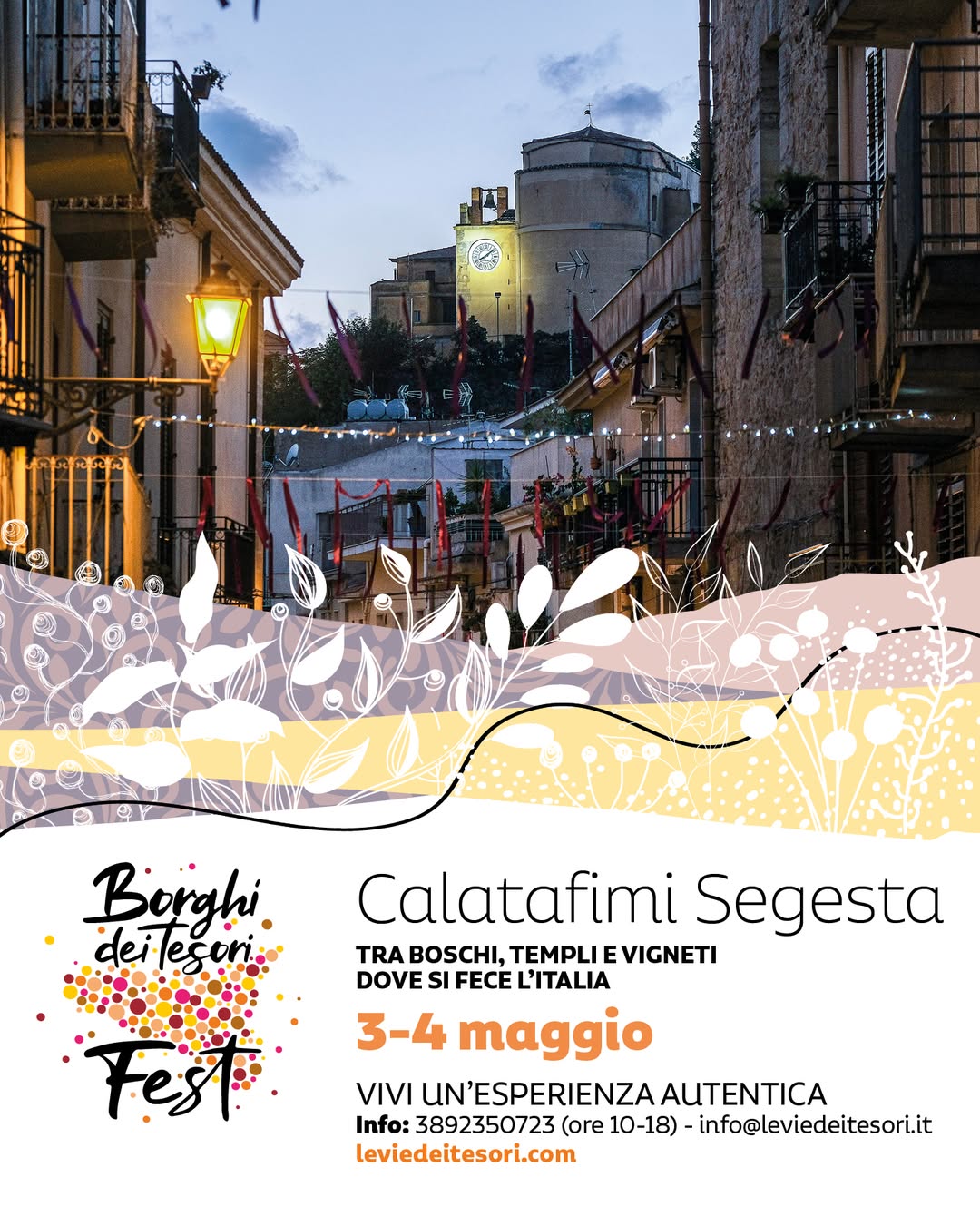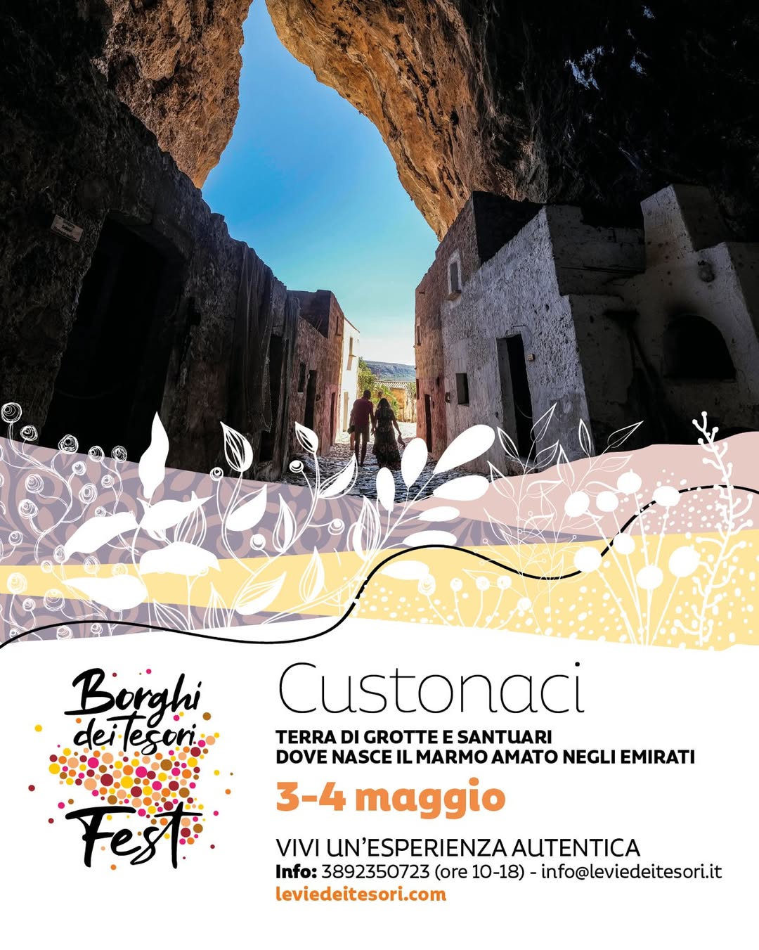 BORGHI DEI TESORI - Dopo la sospensione per il lutto nazionale, il Borghi dei Tesori Fest riparte il 3 e 4 maggio con visite ed esperienze diffuse in tutta la Sicilia. In provincia di Trapani, i riflettori sono puntati su Custonaci, dove si potrà esplorare il suggestivo villaggio preistorico di Scurati, con le sue grotte abitate fino all’Ottocento e la celebre Grotta Mangiapane, trasformata in museo etnografico vivente. A Calatafimi Segesta riapre l’antico eremo di San Michele, luogo di pace e spiritualità, e si potrà approfondire la storia del territorio tra reliquie religiose e paesaggi collinari. A Balestrate, invece, l’esperienza è immersiva e contemporanea: una passeggiata tra i campi di mango in fiore, che raccontano la scommessa tropicale dell’agricoltura siciliana, uniti a degustazioni e storytelling agricolo. Sono previste anche attività legate alle tradizioni culinarie e alla vita rurale. Il festival, promosso dalla Fondazione Le Vie dei Tesori, permette di partecipare con coupon digitali per visite ed esperienze (10 visite a 18 euro, 4 visite a 10 euro). Da Palermo partono pullman per Custonaci e Calatafimi sabato 3 maggio. Info: www.leviedeitesori.it | WhatsApp e tel: 389 2350723.