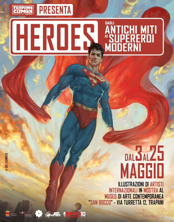 TRAPANI - Dal 3 al 25 maggio il Museo San Roccoospita la mostra “Heroes – dagli antichi miti ai supereroi moderni”, nell’ambito di Trapani Comix & Games. In esposizione tavole originali e copertine di grandi artisti come Frank Miller, Alex Maleev, Simone Bianchi e Gabriele dell’Otto. Un viaggio visivo da Ulisse a Batman, da Achille a Superman, curato da Marco Rizzo e Matteo Belfiore.