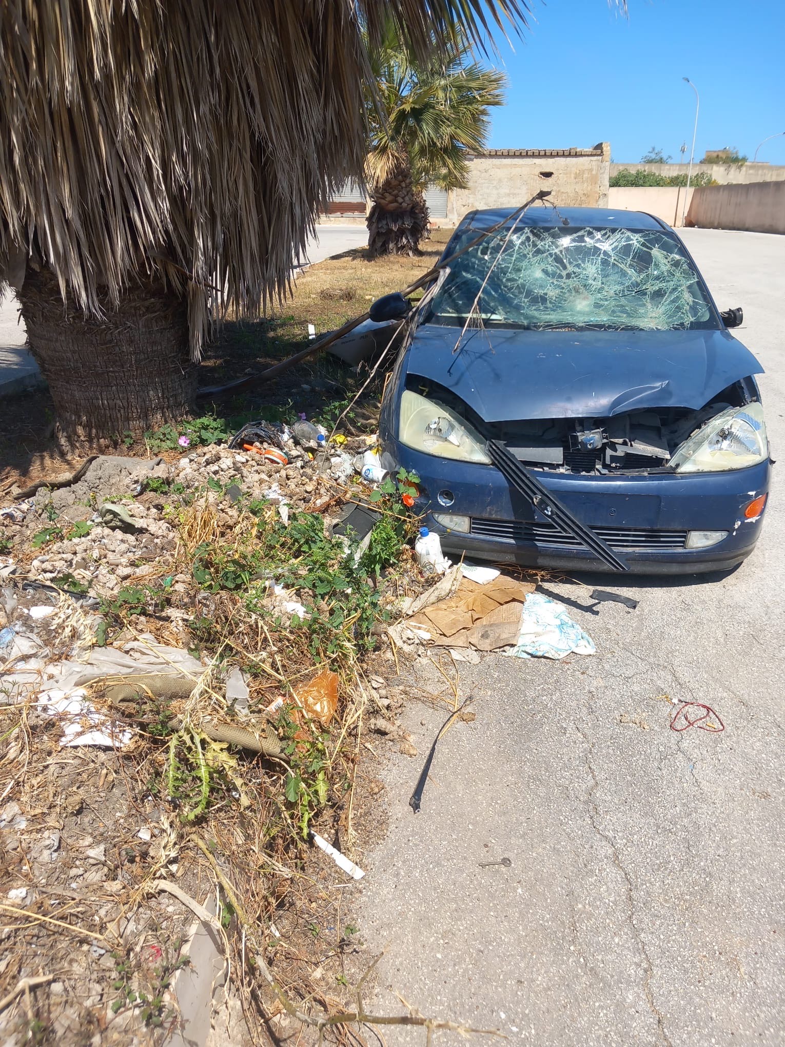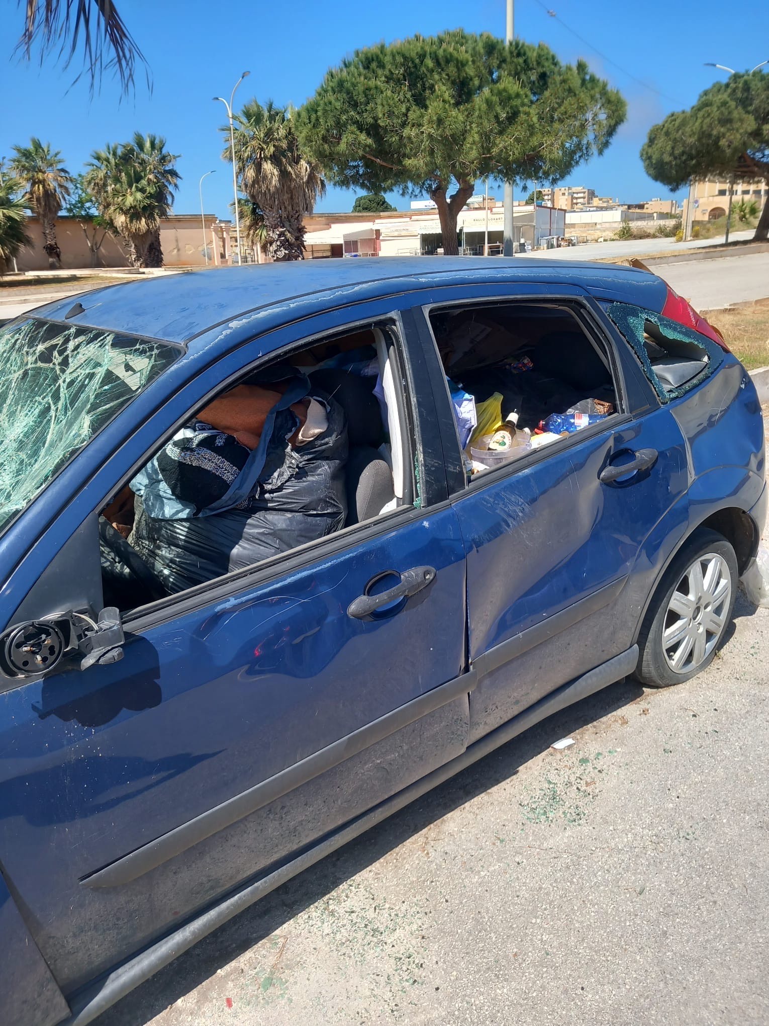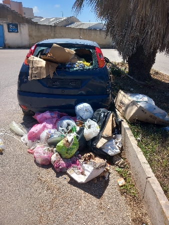 Una Ford Focus blu, con i vetri rotti, la carrozzeria danneggiata, senza targa e visibilmente in stato di abbandono. Ma il dettaglio più inquietante è che non si tratta solo di un relitto.  L’auto, ormai ridotta a rottame, è stata trasformata in un vero e proprio deposito di rifiuti: al suo interno si ammassano sacchi di spazzatura, cartoni, bottiglie di plastica e altri scarti. Il tutto accade a Marsala, proprio accanto all’ingresso secondario del cimitero comunale.