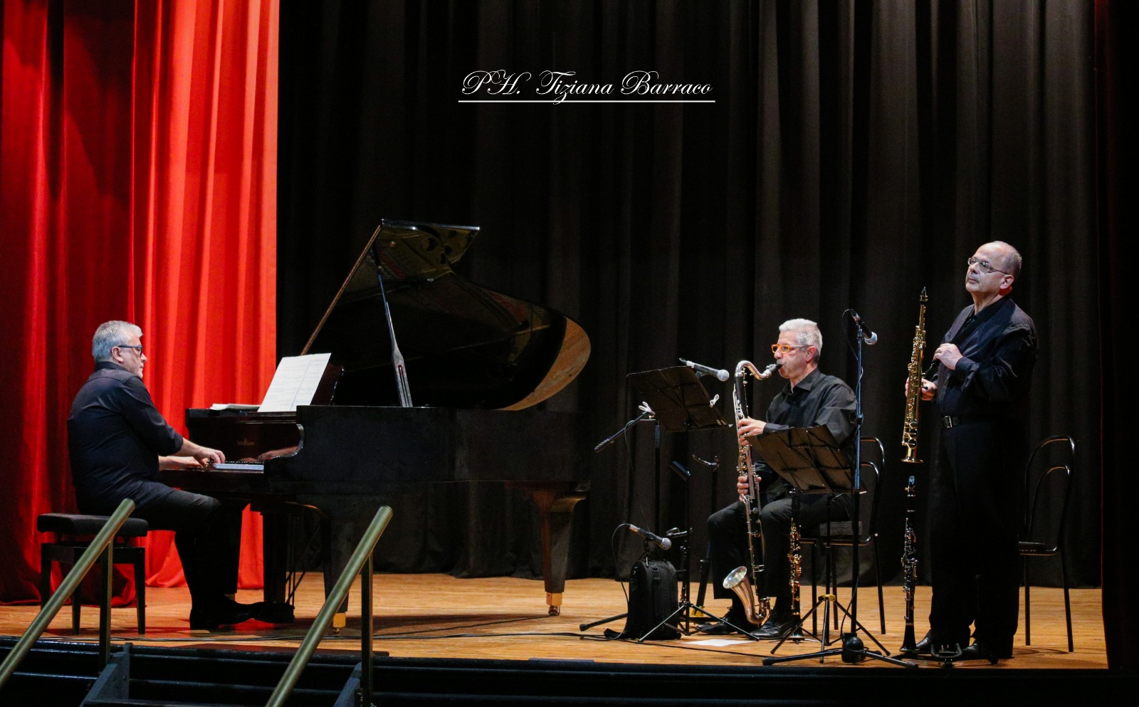 Al Teatro Eliodoro Sollima di Marsala, il Trio Mal d’Estro ha offerto un concerto che è stato molto più di una semplice esibizione: un viaggio sonoro sospeso “Sur le Fil”, sul filo sottile che separa e unisce la musica colta alla libertà del jazz, la tradizione all’improvvisazione. La formazione – composta da Bruno Giordano ai sassofoni e clarinetti, Claudio Massola al clarinetto basso, clarinetto e flauti diritti, e Alessandro Delfino al pianoforte – ha incantato il pubblico con un programma ricco e sfaccettato, spaziando con disinvoltura dal XV secolo a Piazzolla, da Dvořák alla musica tradizionale irlandese.