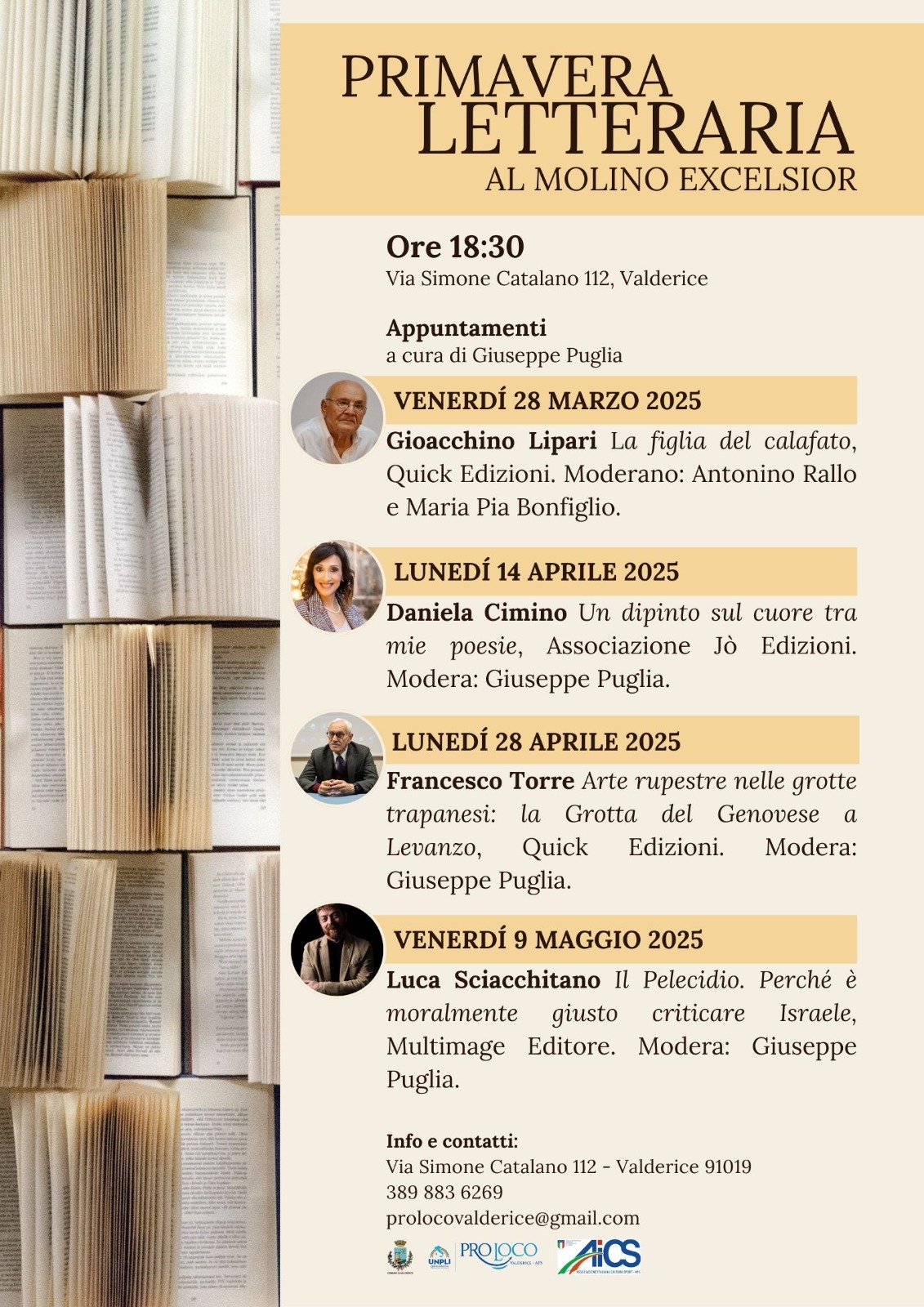Prosegue la rassegna “Primavera Letteraria al Molino Excelsior”, organizzata dalla Pro Loco di Valderice.
