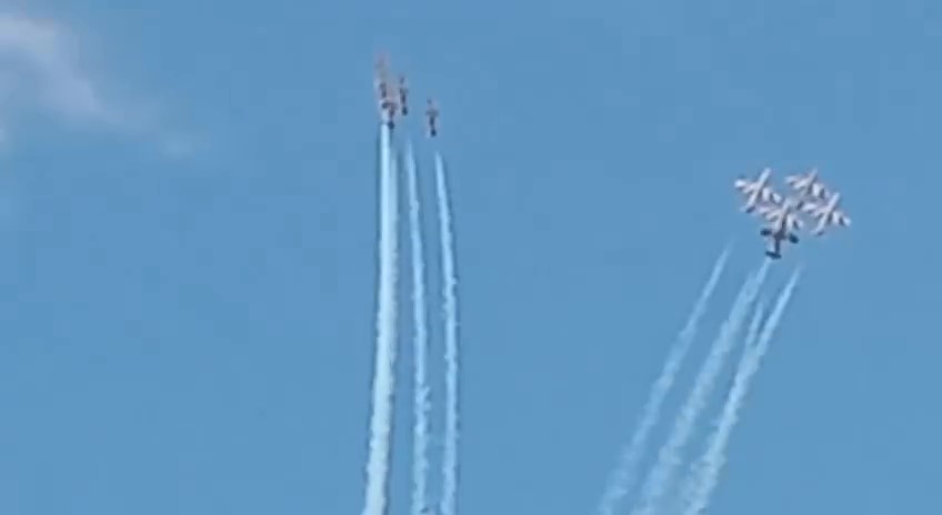 L’Aeronautica militare parla in un nota di «una separazione anomala della formazione, durante la manovra del cardioide, che ha imposto l’interruzione del programma acrobatico».