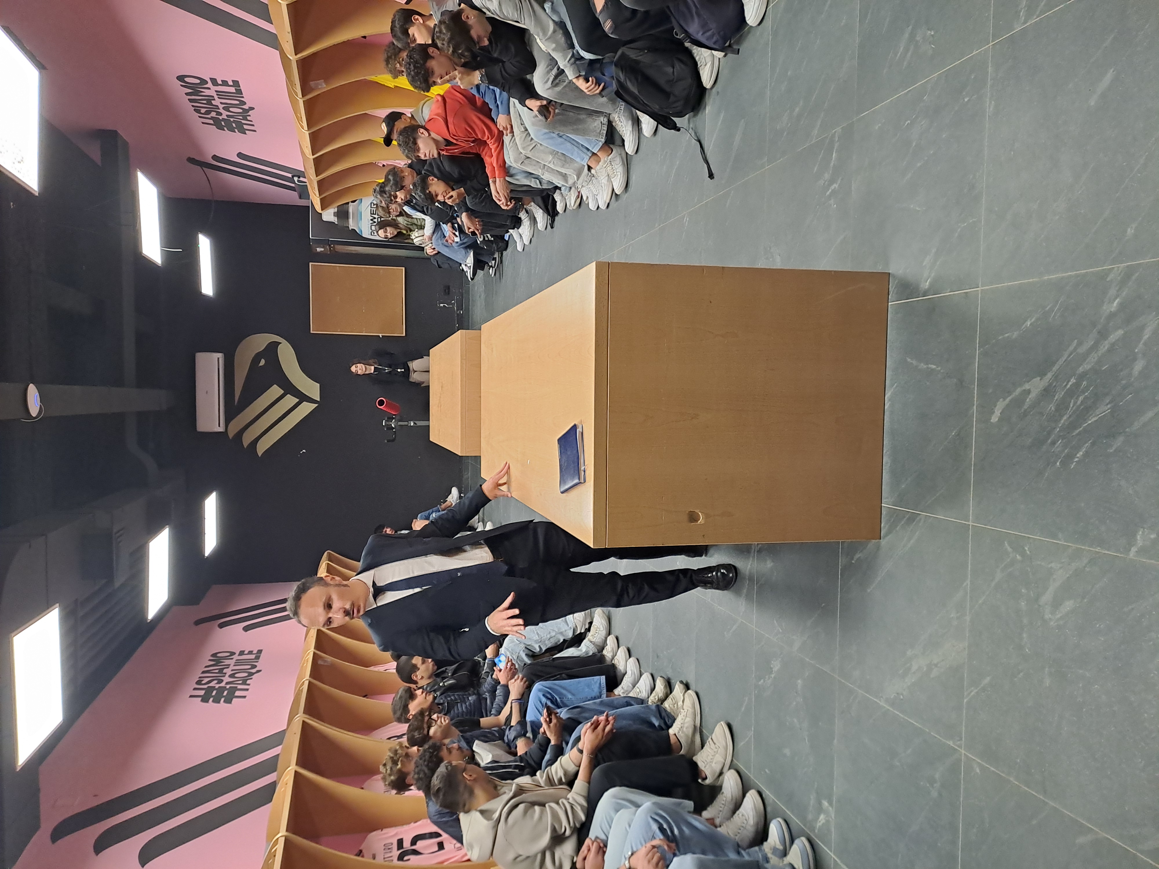 Una esperienza “full immersion” quella vissuta dagli studenti delle quinte classi del “Calvino” grazie alla sensibilità ed alla disponibilità del Palermo Calcio che ha messo a disposizione strutture e personale qualificato affinchè i ragazzi potessero toccare con mano anche nei dettagli la complessa organizzazione di una società sportiva professionistica. In particolare, sotto la guida del giornalista Giovani Tarantino, è stato illustrato loro il funzionamento del settore comunicazione (sala stampa, tribuna stampa, ed altri spazi ad esso dedicati), la disposizione e la gestione dei locali adibiti a squadra, staff tecnico, arbitri, ecc., e quanto predisposto sul piano organizzativo sul terreno di gioco in occasione delle partite di calcio.