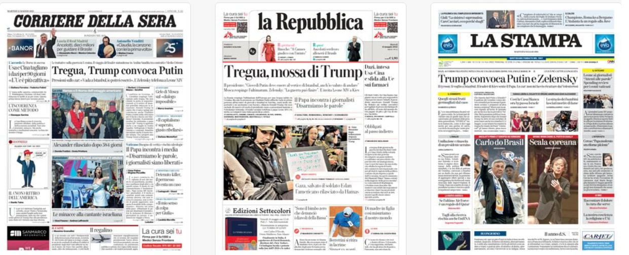 E' il 13 Maggio 2025. Ecco i principali fatti in Italia e nel mondo ed i titoli dei quotidiani.