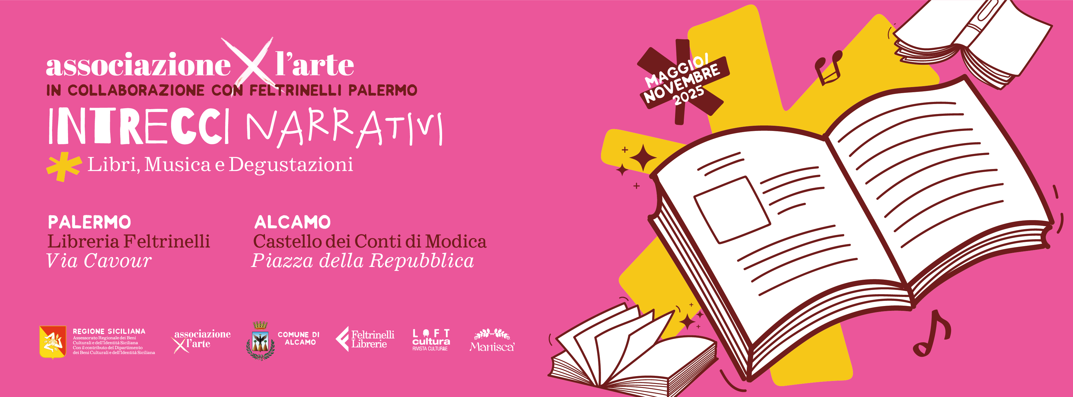 Organizzata da “Associazione per l’Arte”, da oltre 20 anni attiva per la promozione e la diffusione della cultura, con eventi relativi all’arte, alla letteratura e allo spettacolo, nonché al patrimonio audiovisivo cinematografico, prenderà il via giovedì 15 maggio l’edizione 2025 della Rassegna “Intrecci Narrativi” – Libri, Musica e Degustazioni, che si svolgerà, come sempre tra Alcamo e Palermo.