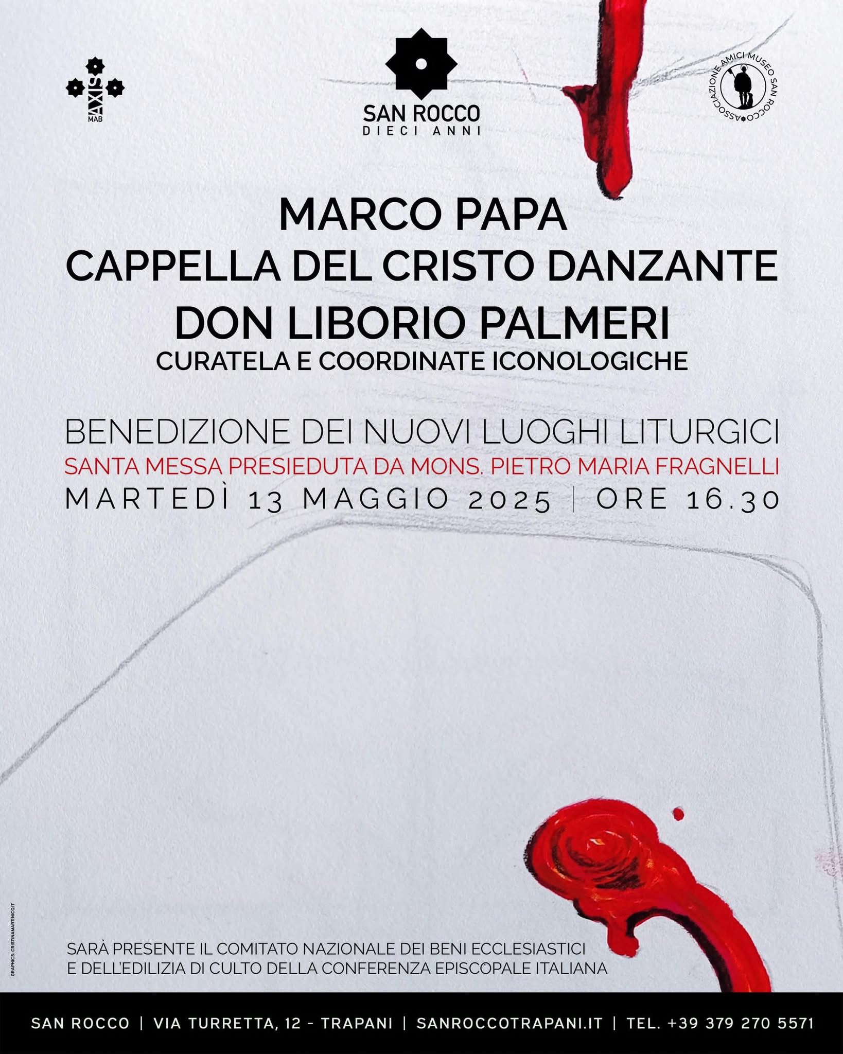 Alle ore 16.00, nella cappella del “Cristo danzante” – opera site-specific dell’artista Marco Papa – il vescovo Pietro Maria Fragnelli presiederà una celebrazione eucaristica con la benedizione dei nuovi luoghi liturgici e della nuova pavimentazione artistica. A seguire, alle ore 19.00, si terrà una conversazione pubblica con due figure centrali del pensiero artistico contemporaneo: Francesco Poli e Bruno Corà. Il dibattito sarà moderato dal direttore del Museo San Rocco, mons. Liborio Palmeri. Il titolo implicito dell’incontro – “La Chiesa fuori dal sistema dell’arte contemporanea?” – richiama una domanda tutt’altro che retorica. In un contesto in cui l’arte contemporanea è spesso associata al mercato, alle aste milionarie e alla spettacolarizzazione (emblematico il caso della “banana” di Cattelan), la Chiesa si interroga sul suo ruolo: può ancora essere interlocutrice attiva per gli artisti? Può contribuire a restituire profondità, contenuto e spiritualità al gesto artistico? Il dibattito metterà in relazione visioni diverse e complementari: Poli, accademico e saggista, e Corà, curatore e critico d’arte, dialogheranno con il pubblico e con i rappresentanti della CEI, tra cui don Luca Franceschini, direttore nazionale dell’Ufficio per i beni culturali ecclesiastici.