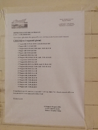Per chi ha bisogno di assistenza, il cartello affisso consiglia di rivolgersi al presidio di Continuità Assistenziale presso il Pronto Soccorso dell’ospedale Sant’Antonio Abate di Casa Santa Erice. Ma per molti cittadini senza mezzi o in condizioni precarie, anche questo può diventare un ostacolo.