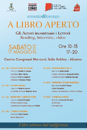 Nell’ambito del Maggio dei Libri, sabato 17 maggio, dalle ore 10:00 alle 13:00 e dalle 17:00 alle 20:00, presso la Sala Rubino del Centro Congressi Marconi di Alcamo, si terrà “A Libro Aperto”, una giornata interamente dedicata alla lettura, al dialogo e alla riflessione culturale.