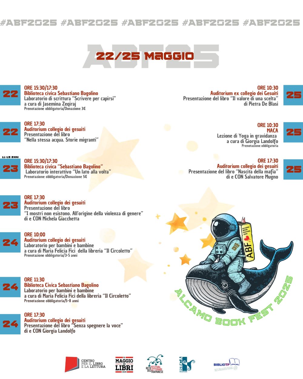 Nato dal basso e cresciuto grazie all’impegno di una rete sempre più ampia di associazioni, scuole, gruppi informali, volontari, cittadine e cittadini, il festival ha saputo radicarsi nel tessuto urbano e sociale di Alcamo, provando a far diventare il centro storico in un teatro a cielo aperto, dove letteratura, arte, musica e performance dialogano con i luoghi e le persone, uno spazio vivo aperto alla riflessione, alla partecipazione e allo scambio. “Alcamo Book Festival si conferma – dichiara l’assessore alla cultura Donatella Bonanno – evento culturale e cantiere aperto, un luogo dove la lettura si intreccia con la cittadinanza attiva, e dove ogni incontro può diventare occasione per costruire comunità, immaginazione e consapevolezza. Un altro appuntamento all’interno del Maggio dei Libri dove vi aspettiamo numerosi”.