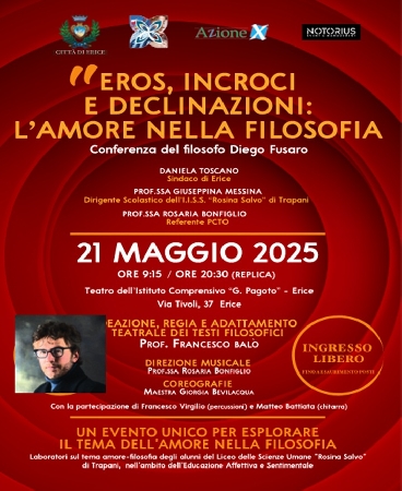Un viaggio nell’educazione sentimentale che mette in scena emozioni, pensiero critico e riflessione, intrecciando filosofia, teatro e musica in un’esperienza corale e partecipata. L’iniziativa, ospitata martedì 21 maggio presso l’Auditorium dell’Istituto Comprensivo Pagoto di Erice, si articolerà in due momenti: una matinée alle ore 9.15 riservata agli studenti del liceo, e una replica serale aperta alle famiglie e al pubblico (su prenotazione) alle ore 20.30.