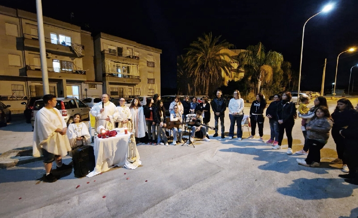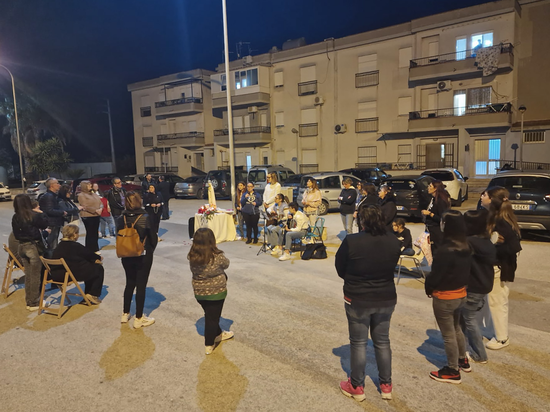 In questo mese mariano, la “Madonnina dei poveri pellegrina” ha fatto tappa tra le palazzine popolari del quartiere: un momento intenso di preghiera, Rosario e santa messa celebrata da don Nicola, vissuto sotto i balconi, a pochi passi dalle vite di ogni giorno.