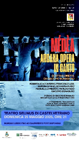 Domenica 25 maggio, alle ore 21.00, il Teatro Selinus di Castelvetrano ospiterà lo spettacolo “Mèdéa, arcana opera in canto”, scritto e diretto da Giacomo Bonagiuso.