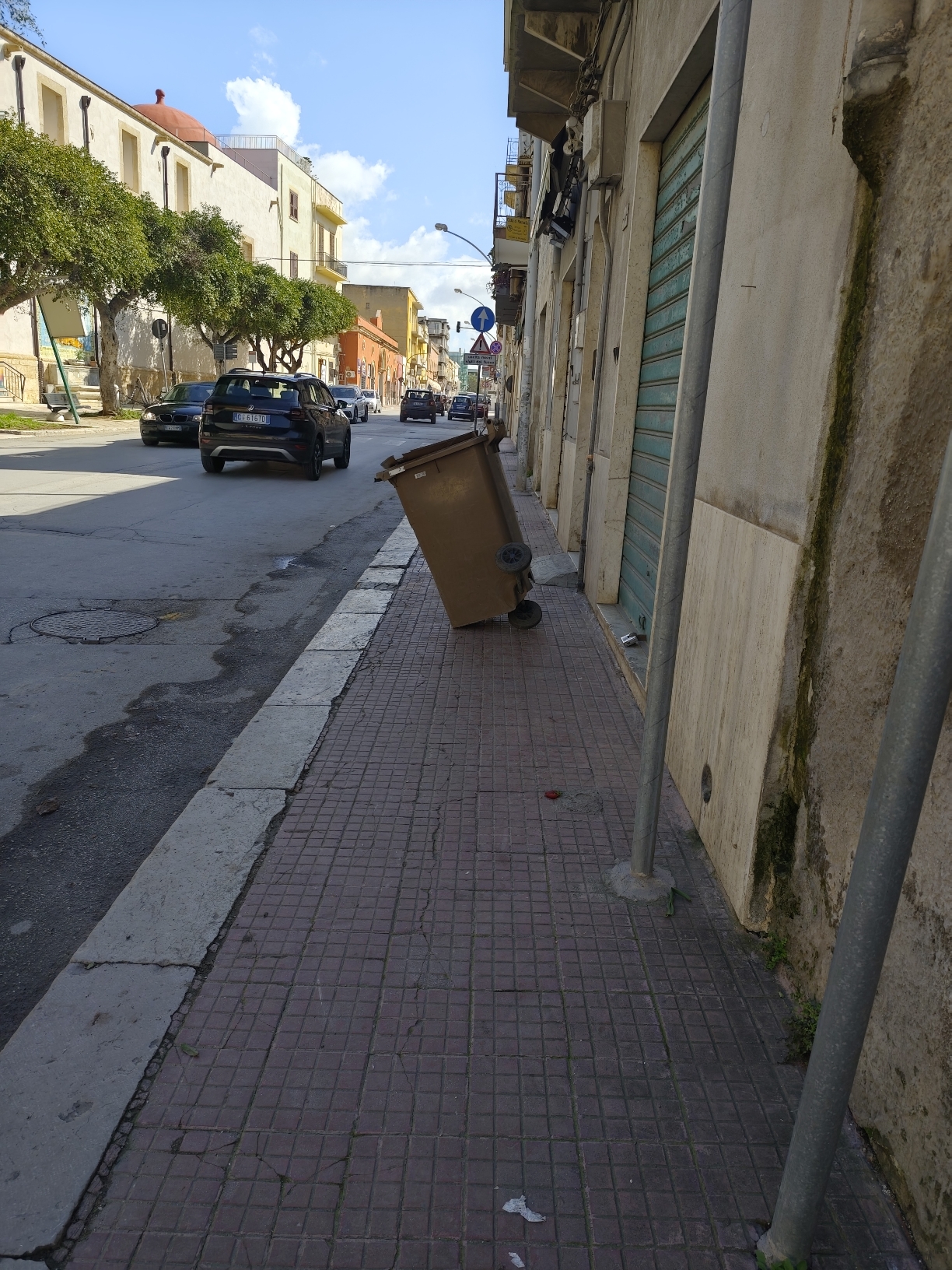 «È inaccettabile – scrive un lettore di tp4 – che in una città civile si debba camminare in mezzo alla strada perché i marciapiedi sono occupati da chi non ha rispetto né delle regole né degli altri». Il riferimento è in particolare a un grosso bidone dei rifiuti posizionato proprio al centro del passaggio pedonale, oltre alle consuete auto parcheggiate in sosta vietata. Un problema di inciviltà, certo, ma anche di gestione del decoro urbano.